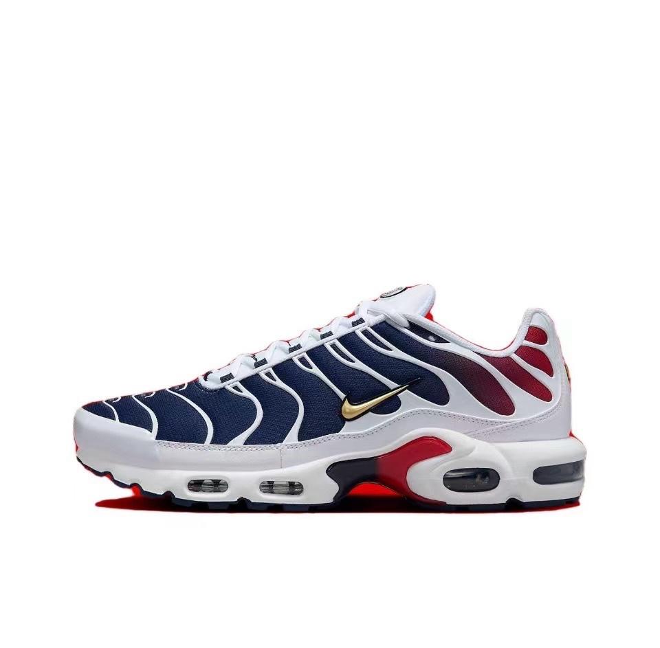 Step out in style with the PSG Paris sneakers, featuring a striking blend of navy blue and red hues. These multi-colored Nike TNs combine bold colors with iconic design, perfect for making a confident statement wherever you go. Experience both comfort and eye-catching appeal in one dynamic pair.